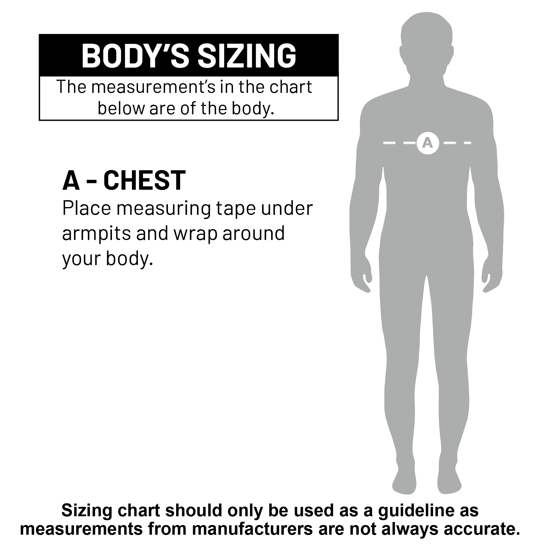 | Chest | 33"-36" | 37"-40" | 41"-44" | 45"-48" | 49"-52" | 53"-56" | 57"-60" |